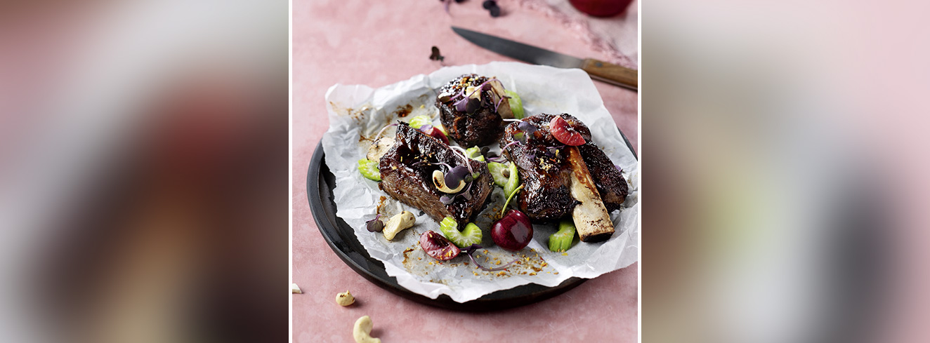 Ein Highlight unter den Rezeptideen ist die Kombination aus glasierten Shortribs vom Alpenrind mit Kirsch-Teriyaki, Cashewnüssen und Stangensellerie, verfeinert mit einer Prise Exquisite Golden BBQ. Die Mischung aus geräuchertem Rohrohrzucker und feiner Vanille verleiht dem Gericht eine elegante Süße mit rauchigem Unterton und sorgt für ein perfekt balanciertes Aromaprofil.