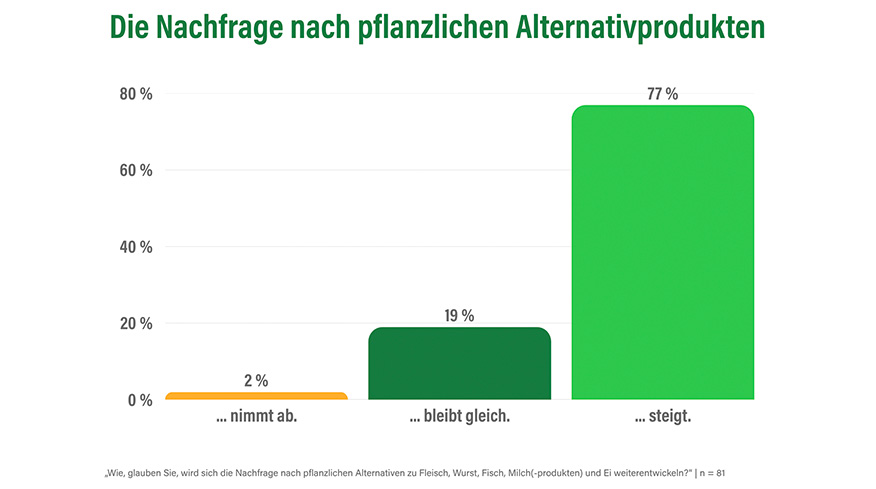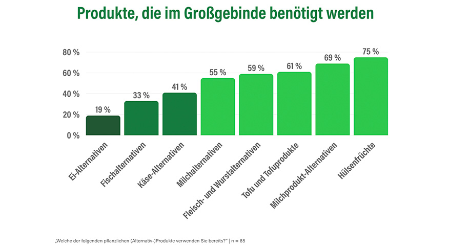 Laut einer aktuellen ProVeg-Umfrage rechnen acht von zehn Betrieben im Außer-Haus-Markt mit einer wachsenden Nachfrage nach pflanzlichen Alternativprodukten. Der Bedarf an Großgebinden ist hoch - gleichzeitig bleiben Preis und Nährwerte zentrale Kritikpunkte.