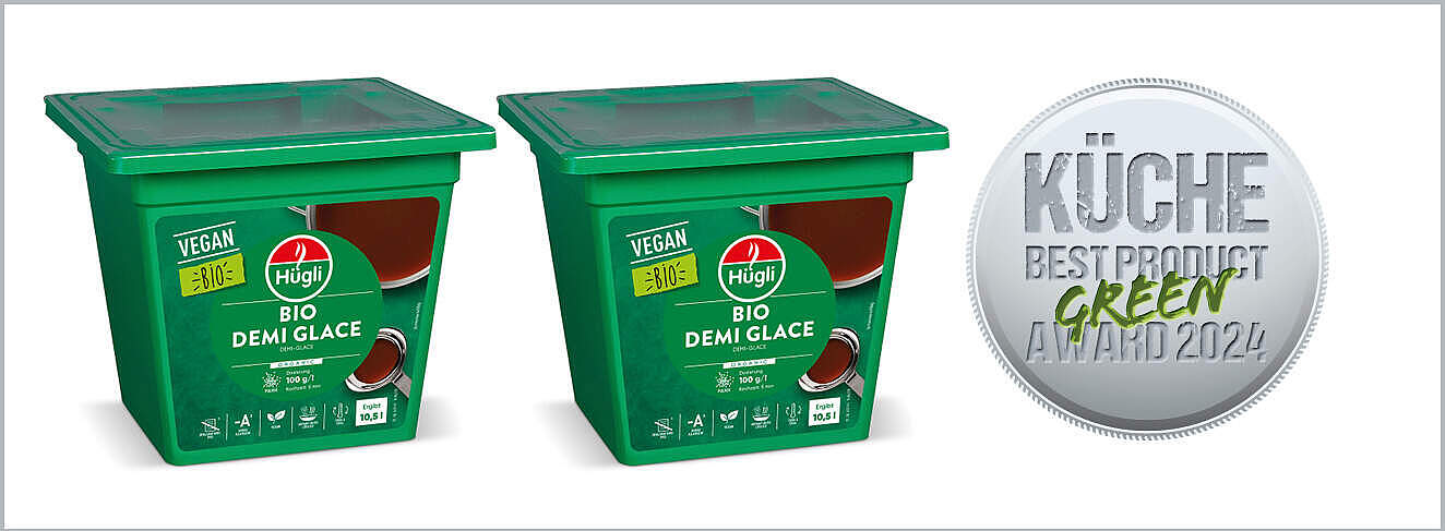 Die Bio Demi Glace von Hügli wurde von der Fachjury des KÜCHE BEST PRODUCT GREEN AWARD in der Kategorie Food mit einer Silbermedaille ausgezeichnet. Alle Gewinner finden Sie auch in KÜCHE 3/2024.