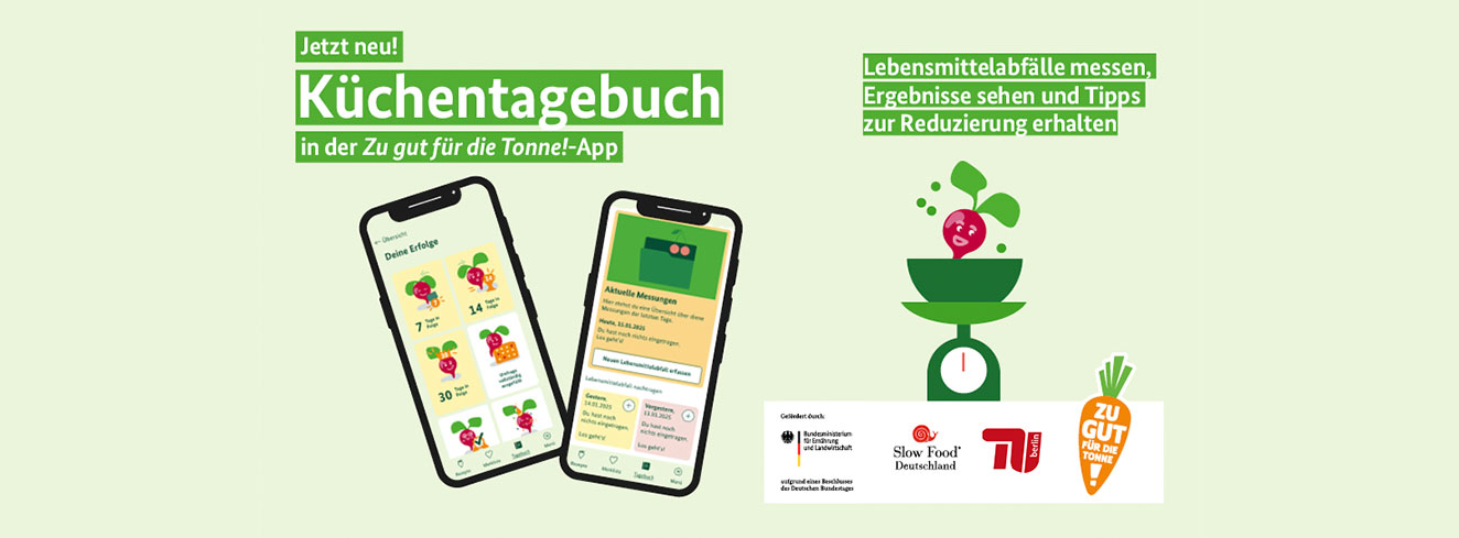 Zentrales Instrument ist das neue digitale Küchentagebuch in der kostenlosen “Zu gut für die Tonne!-App” des Bundesministeriums für Ernährung, Landwirtschaft und Heimat. Nutzerinnen und Nutzer erfassen darin entsorgte Lebensmittel, erhalten persönliche Auswertungen und Tipps zur Reduktion von Food Waste. Spielerische Elemente wie Badges, Rezeptvorschläge und Etappenziele fördern die Motivation zur langfristigen Veränderung.