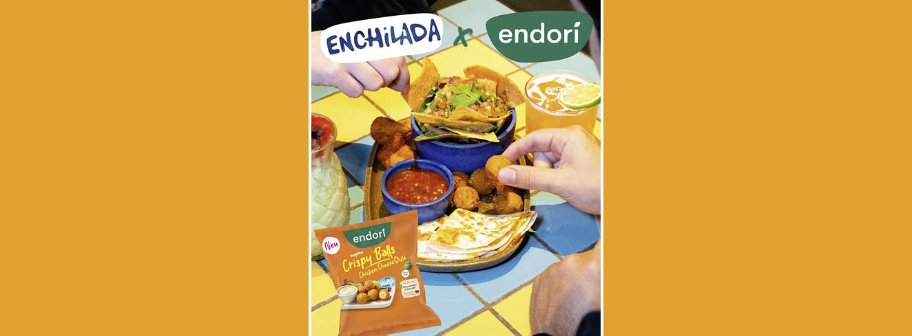 Zum Jahresbeginn setzt die Enchilada Gruppe auf pflanzliche Vielfalt: In Kooperation mit dem Hersteller endori werden zwei vegane Gerichte mit den neuen Crispy Balls Chicken Cheese Style in allen 22 Restaurants angeboten.