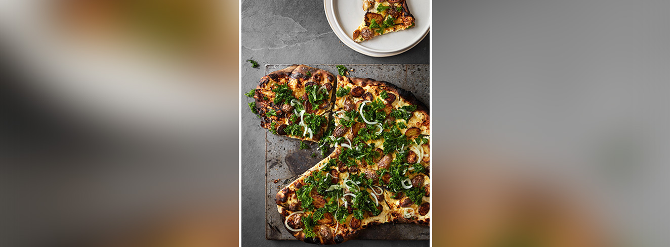 Aus Kartoffelresten und frischem Blattkohl wird bei Meyers Kantiner eine originelle Pizza ohne Tomatensoße, die zeigt, wie vielseitig und schmackhaft Zero-Waste-Küche sein kann - einfach, saisonal und professionell gedacht.