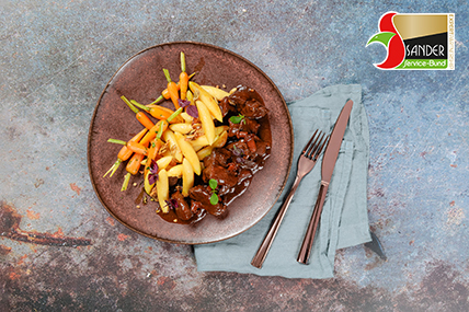 Mit dem Saisonangebot von Sander und Service-Bund. Kreative Menükomponenten für Vorspeisen, Hauptspeisen und Desserts – einfach zubereitet in höchster Qualität.